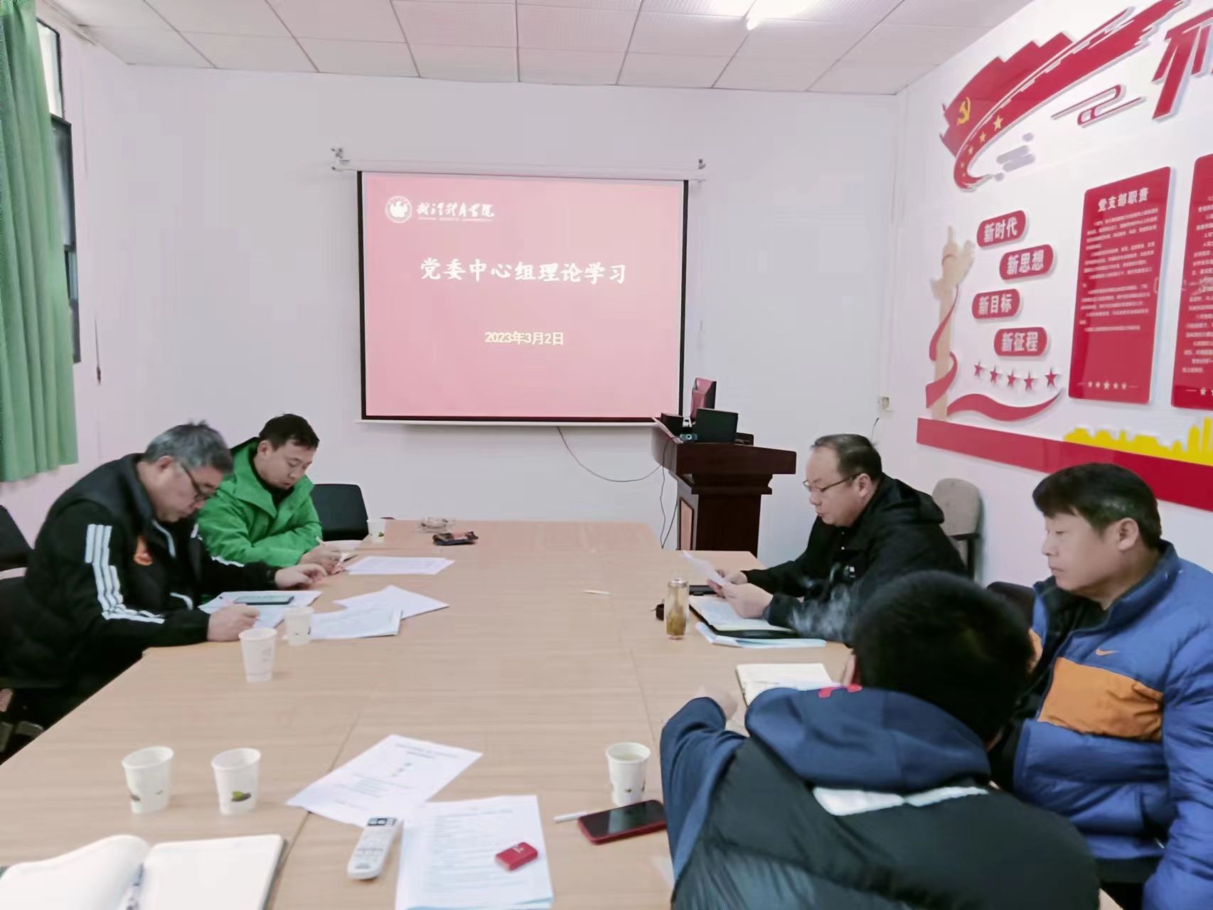 3月2日上午,足球学院在二楼会议室召开党委理论学习中心组学习会议,开展2023年第一次集中学习,学院领导班子成员、党委委员、教研室主任、办公室主任、教学秘书、辅导员代表等参加会议。学院党委书记、院长王云涛主持学习。