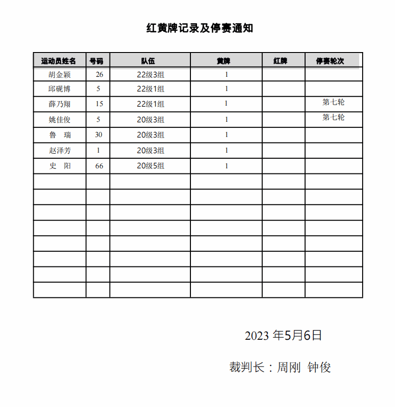 金典杯男子甲组第六轮成绩公告