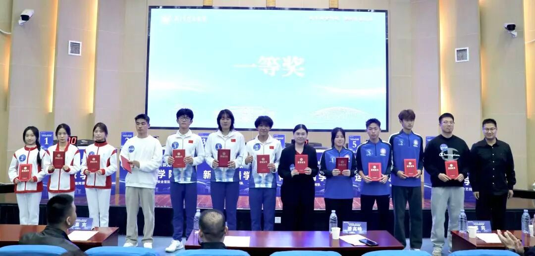 最终,体育教育学院、艺术学院、足球学院获得一等奖、运动训练学院、新闻传播学院获得二等奖,网球学院获得三等奖。潘高峰为获奖队伍颁奖。