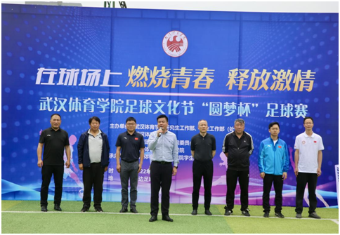 2022年5月18日,武汉体育学院足球文化节“圆梦杯”足球赛在湖边足球场正式开幕。武汉体育学院党委常委、副校长张飙,学生工作部(处)、 研究生工作部长张广弟,工会常务副主席熊振宇,足球学院副书记、副院长郑原,教研室主任王松岩,校团委田一平,组织员高明才、团委书记李磊等出席了本次比赛开幕式。