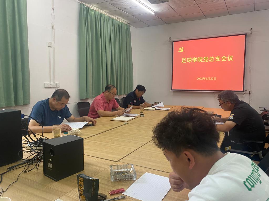 6月22日下午,在二楼会议室,足球学院召开党总支委员会议,会议由党总支书记王云涛主持,学院党总支委员参加。