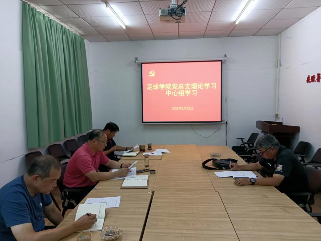 6月22日下午,足球学院党政领导班子成员、办公室主任、教研室主任、各支部书记、辅导员在学院二楼会议室召开党总支理论学习中心组学习会议。本次学习由学院党总支书记、院长王云涛领学。