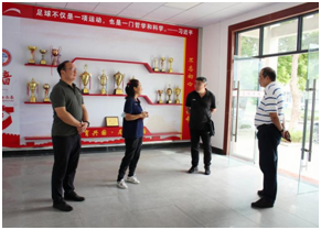 2022年9月23日上午,中国足球发展基金会青少年足球发展部部长、前中国女足国脚王丽平莅临我校,武汉体育学院足球学院党总支书记、院长王云涛,足球学院党总支副书记、副院长刘永东,足球学院副院长郑原,足球学院教研室主任王松岩,一同参观我校天然草地足球场、体能训练馆、足球学院办公室等训练场所和设施并展开会议交流。