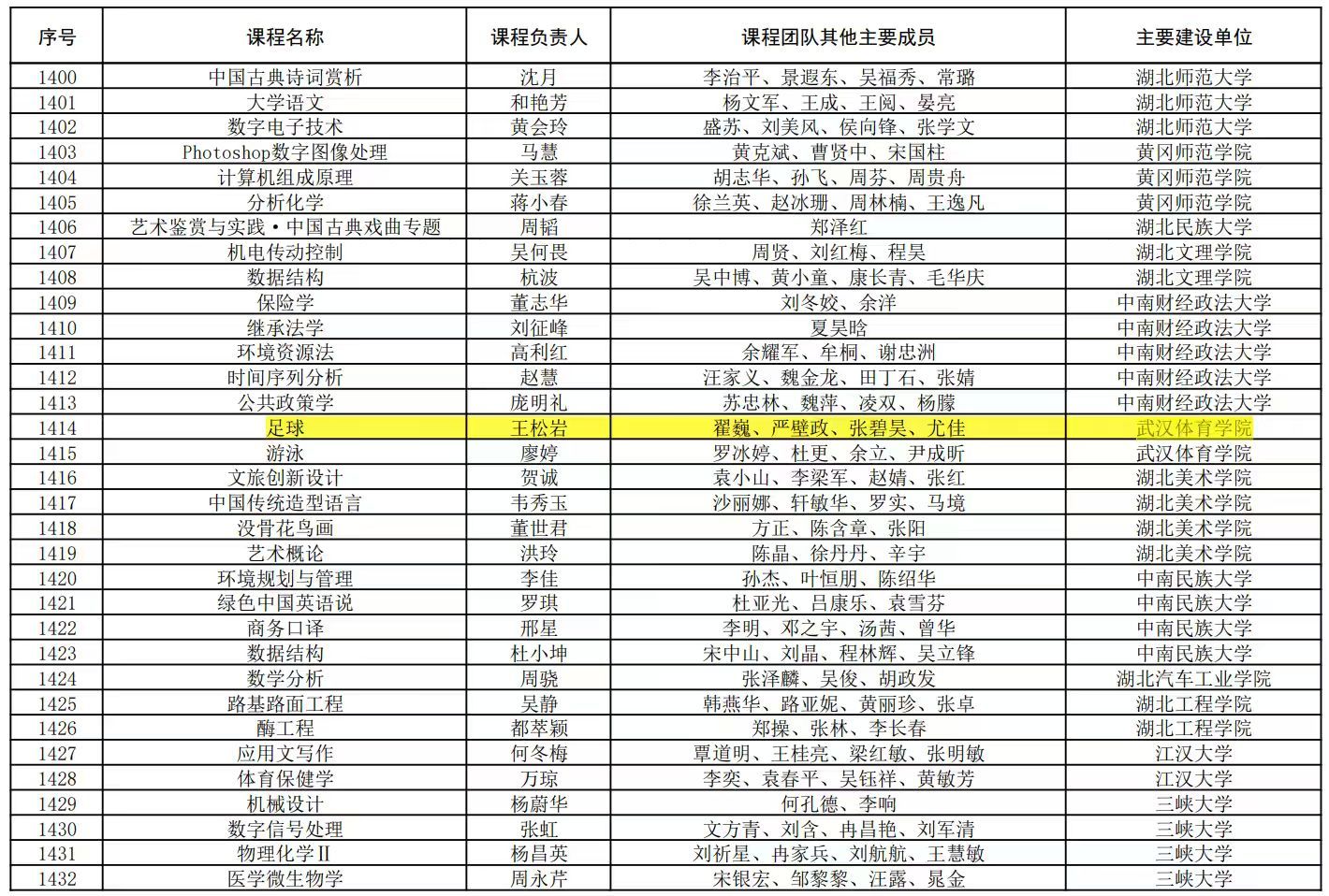 近日,教育部正式公布第三批国家级一流本科课程认定结果。武汉体育学院足球学院申报的《足球》课程成功入选,被认定为国家级一流本科课程,标志着该校在足球专业课程建设与教学改革方面取得重要突破,育人成果获得国家级权威认可。