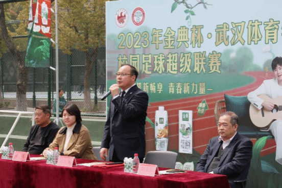3月27日,迎校庆.2023年金典杯武汉体育学院校园足球超级联赛开幕式在武汉体育学院湖边足球场隆重举行。足球学院党委书记、院长王云涛,党委副书记、副院长刘永东,副院长郑原,伊利品牌方代表秦艳等出席开幕式。