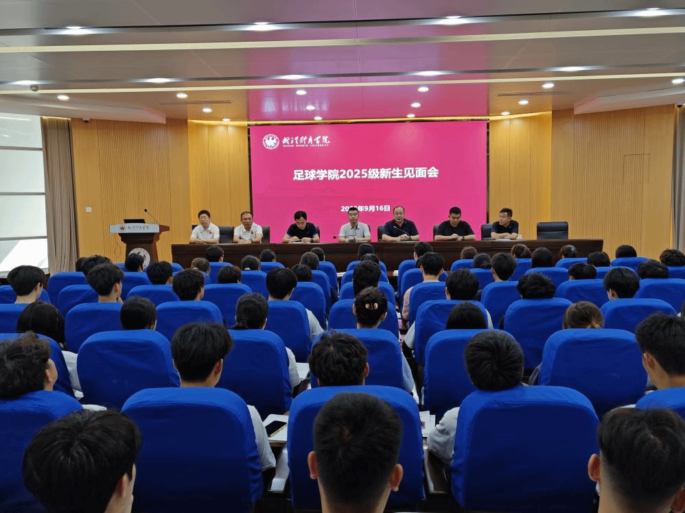 2025年9月16日9:30,足球学院于东教三楼二报告厅组织开展2025级新生见面会。足球学院党委书记王超,院长王云涛,副院长花楷,教研室主任王松岩、组织员高明才、新生专项教师代表周刚、翟巍、各年级辅导员及2025级全体新生参加了此次见面会,本次会议由耿石艳主持。